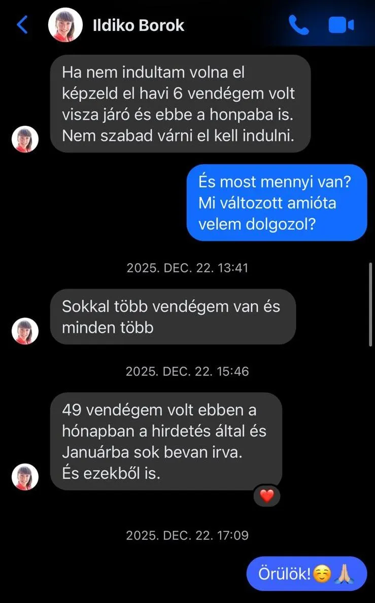 Átlagosan az ügyfeleim a 2–3. hónap környékén látják a valódi megtérülést, amikor a rendszer már beállt és folyamatosan termeli a vendégeket.